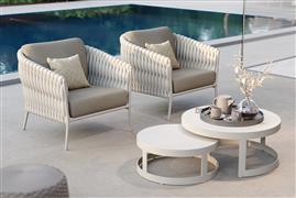Nízké křeslo Fortuna Sock, Jati Kebon, hliník, výplet, venkovní látka