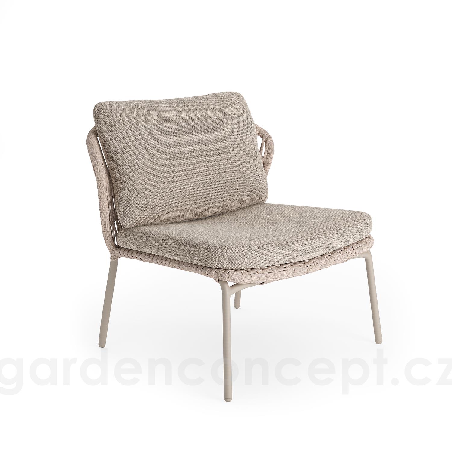 Nízké křeslo s nízkou zádovou opěrkou Lima, Jati Kebon, 87x81x81 cm, rám hliník barva sand mat, výplet lanko 14 mm barva linnen, bez polstrů