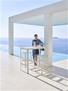 Stohovatelná barová židle vyšší kolekce Cut značky Cane-line je celohliníková.