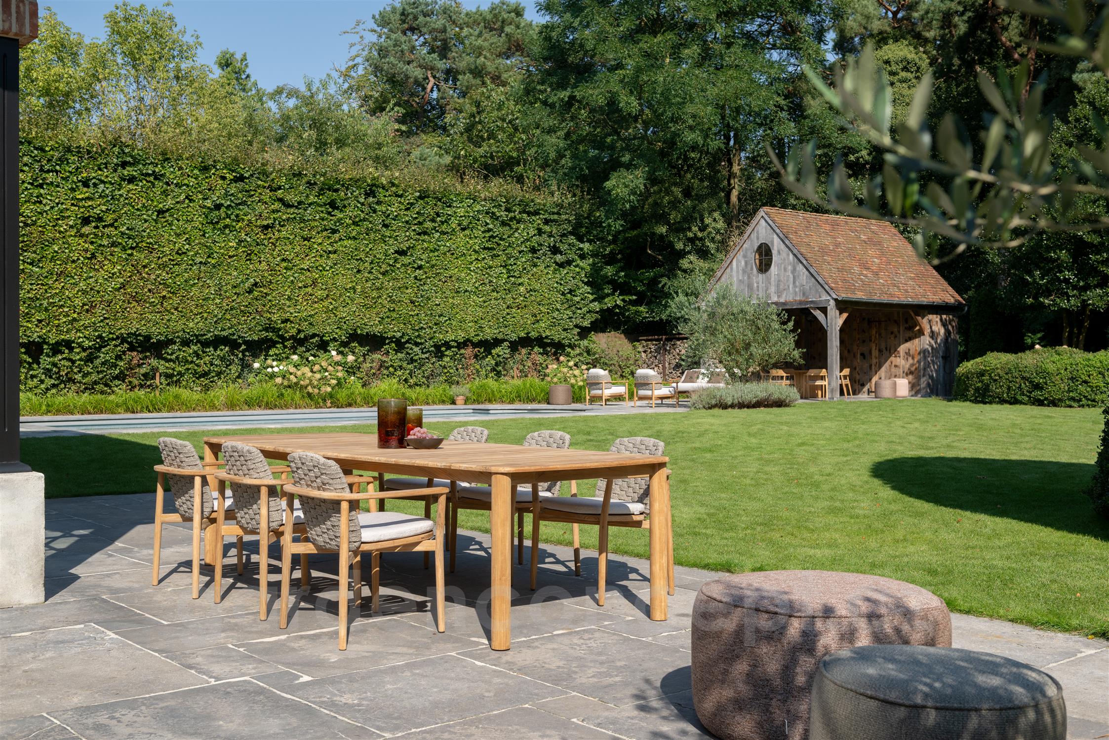 Teakové jídelní křeslo Boho, Jati Kebon, teak, lanko, venkovní látka