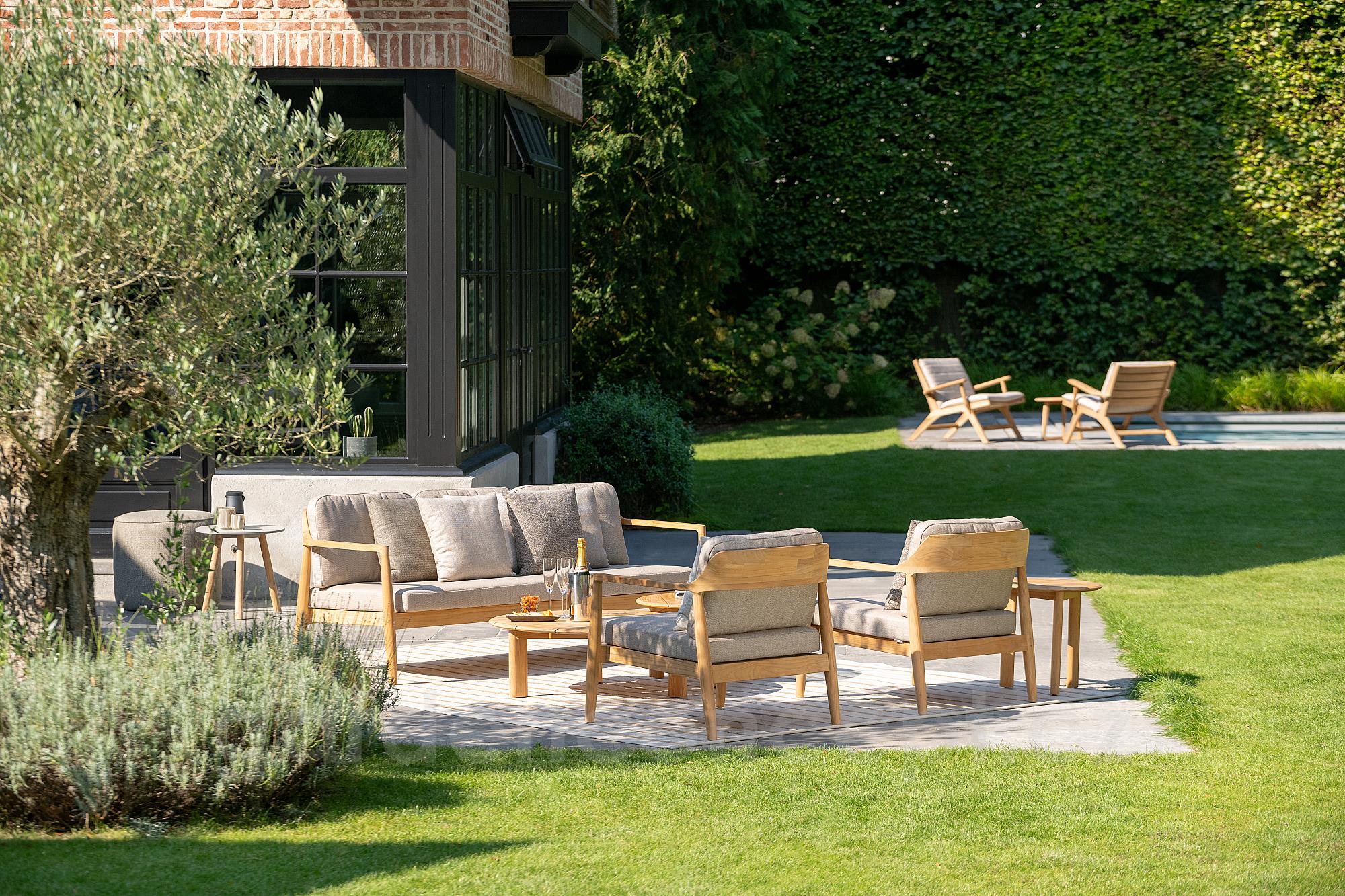 Teakové nízké křeslo z kolekce Tofino Teak od belgické značky Jati Kebon.