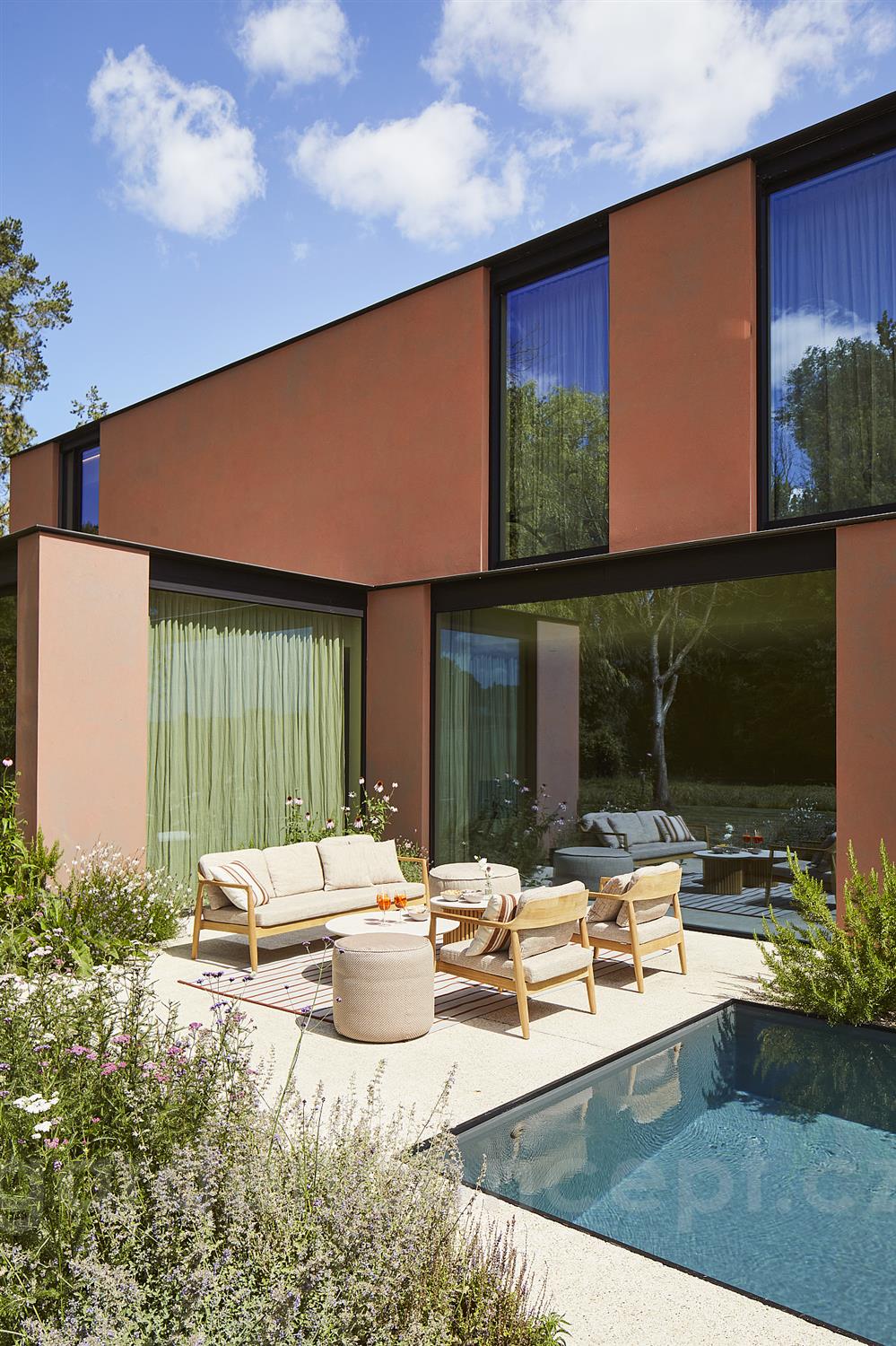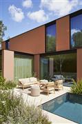 Opěrný polštář pro nízké křeslo/pohovku Tofino Teak, Jati Kebon, venkovní látka Suntessa Marshall Bric Rust