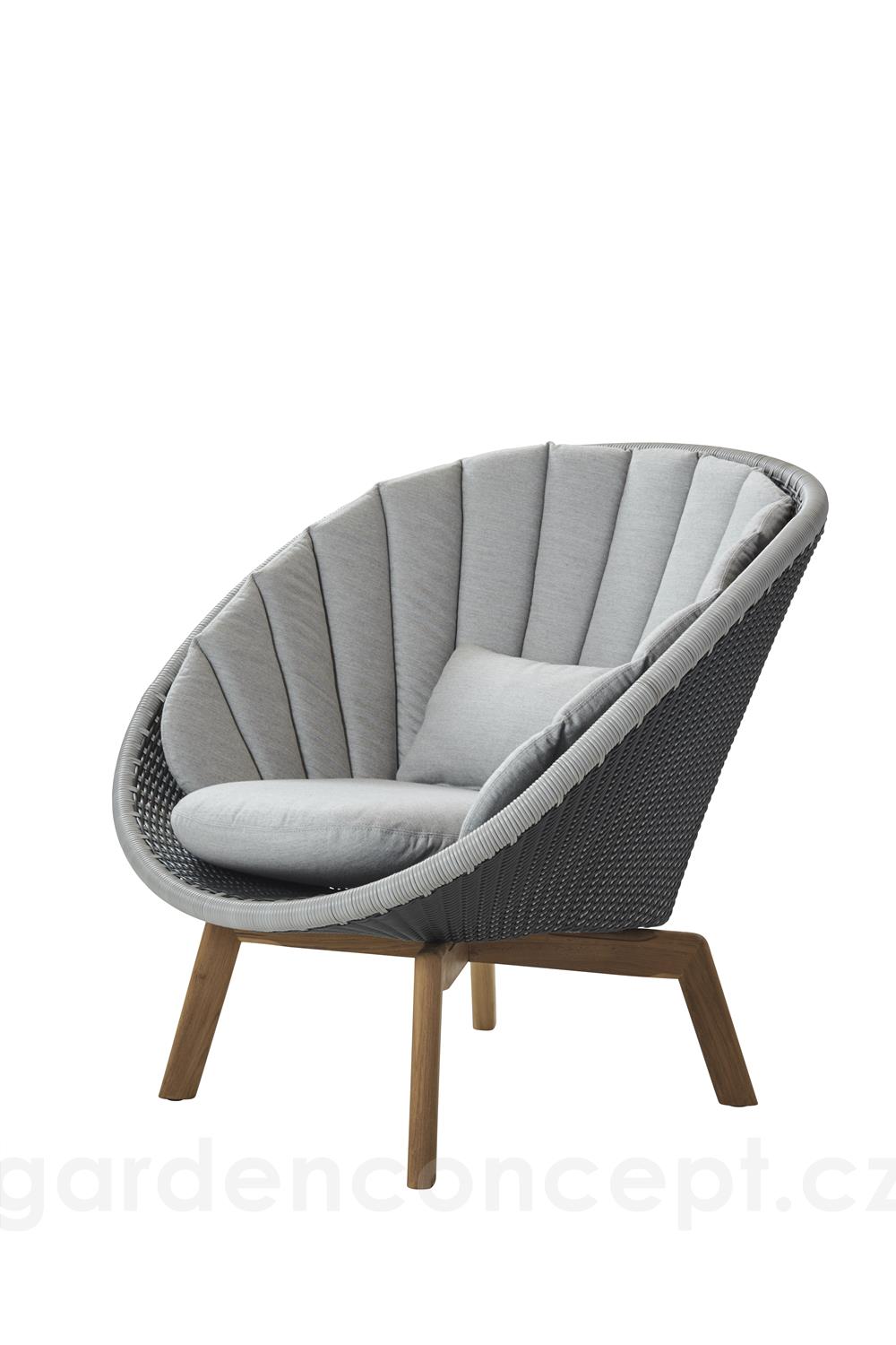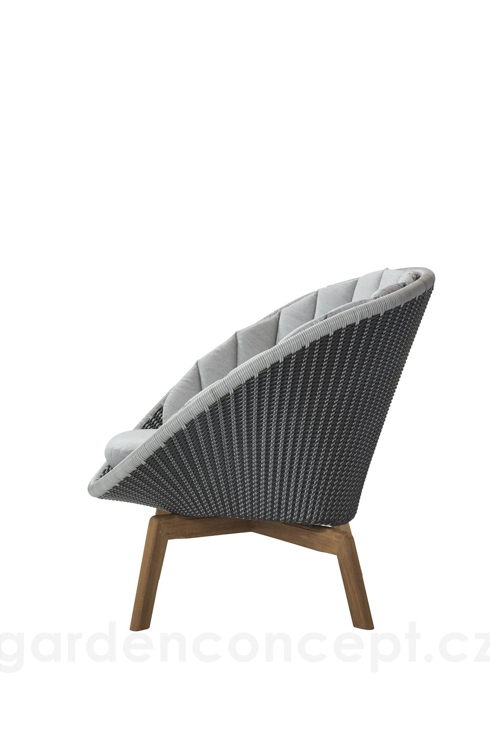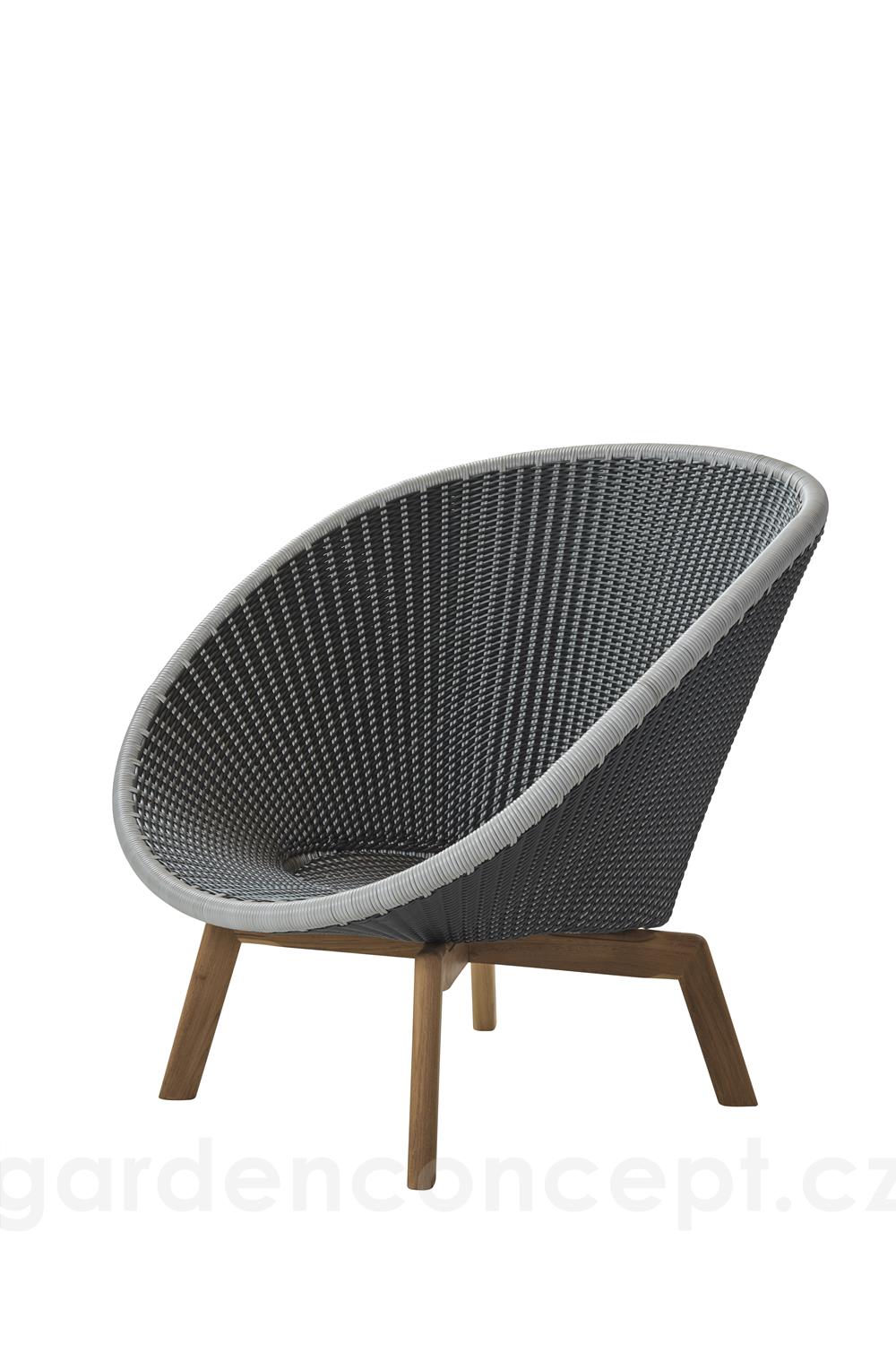Nízké křeslo Peacock, Cane-line, 91x93x87 cm, nohy teak, rám hliník, výplet umělý ratan barva grey/light grey, bez polstrů