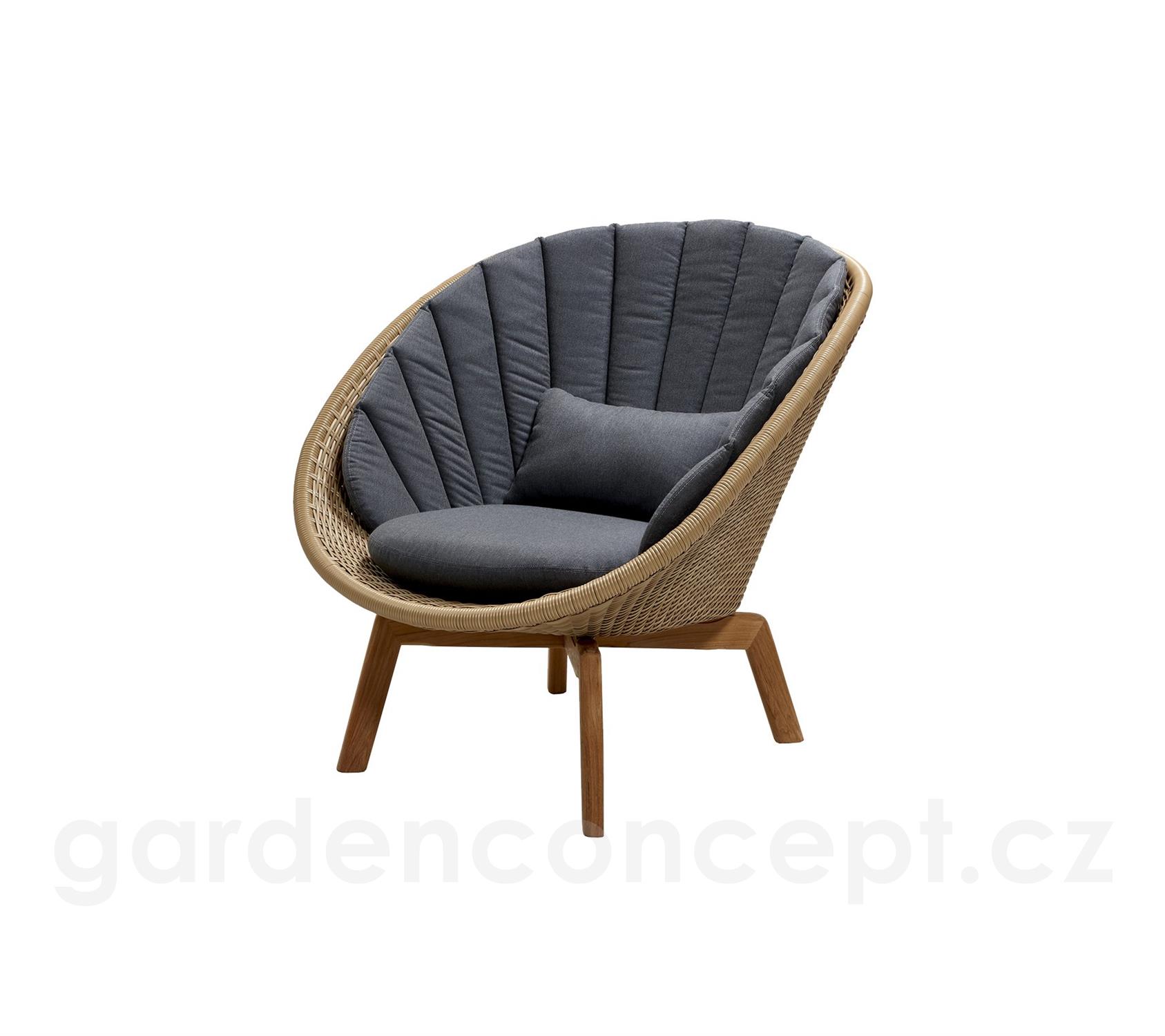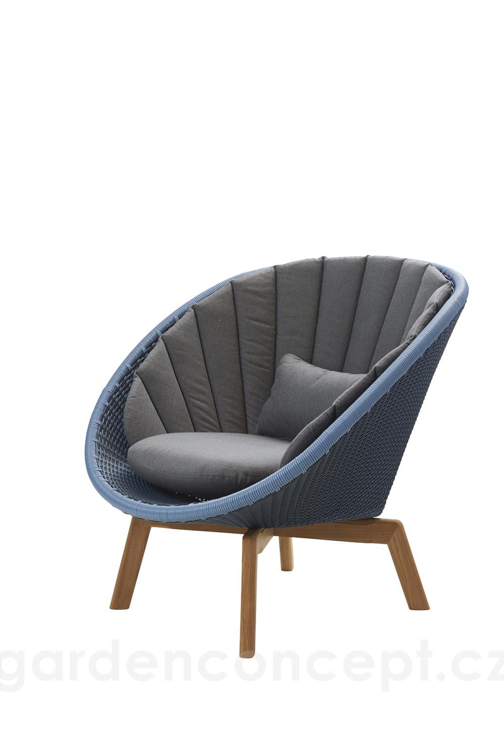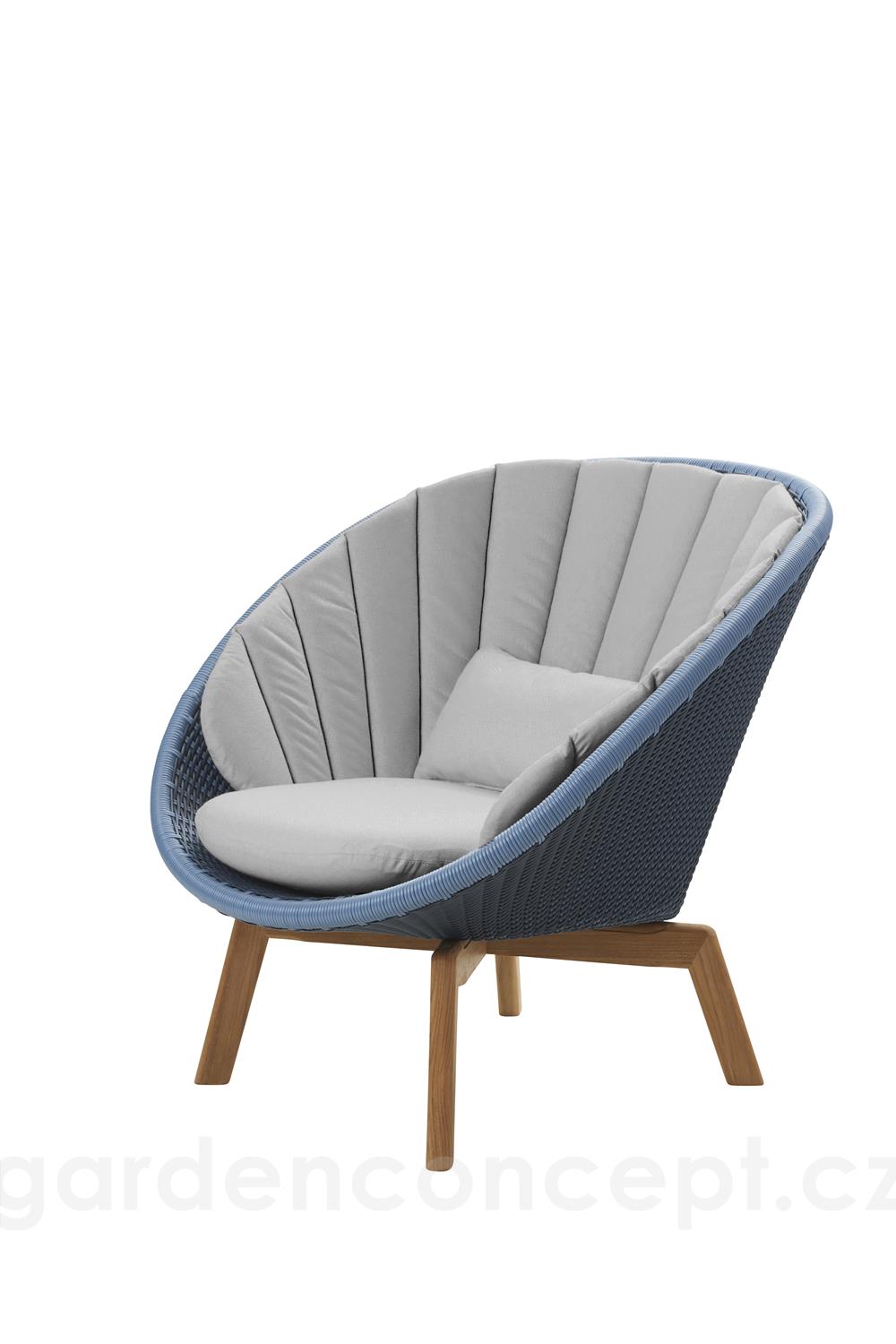 Nízké křeslo Peacock, Cane-line, 91x93x87 cm, nohy teak, rám hliník, výplet umělý ratan barva grey/light grey, bez polstrů